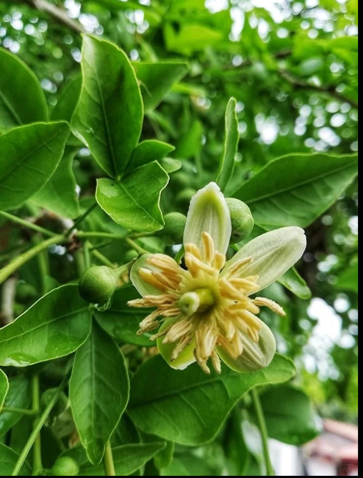 This slow-growing deciduous tree can reach a height of 8 to 12 metres. It produces fragrant white flowers and large fruit, adding to its natural charm. The Bilva is a striking addition to any indoor or outdoor space.